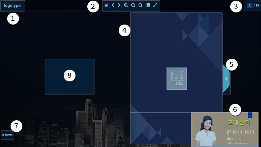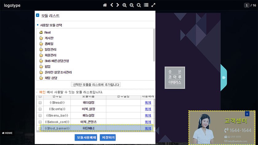 이북 페이지 환경설정소스 수정 경로 : 관리자 > 디자인관리 > 템플릿 디자인관리 > 모듈 > 공통모듈 > 이북_설정
